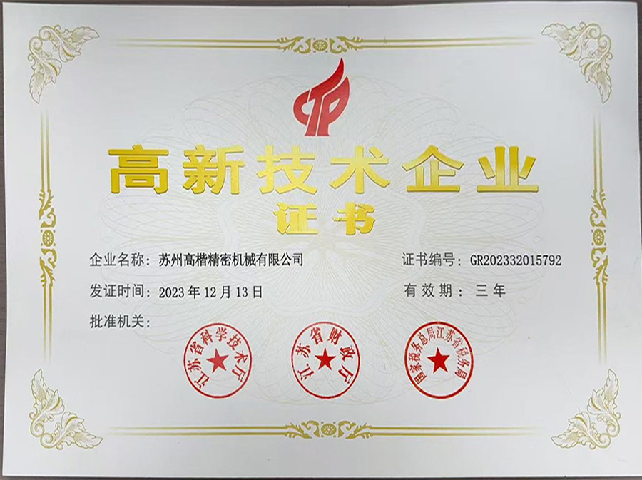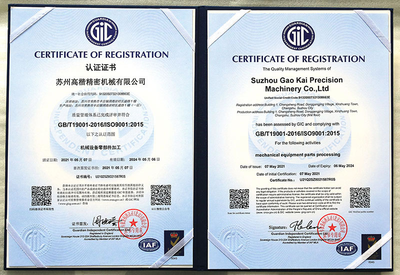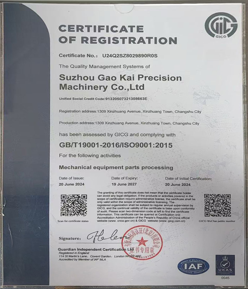 Suzhou Gaokai Precision Machinery Co., Ltd., with a registered capital of 1 million RMB and a total investment of 5 million RMB. The company was established at the end of 2015. Located at 1309 Xinzhuang Avenue, Xinzhuang Town, Changshu City, Suzhou City. The factory covers an area of 3000 square meters.